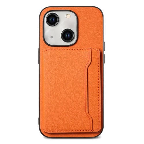 Funda para Teléfono iPhone 15 Diseño Bolsa de Tarjeta Textura de Becerro (Naranja)