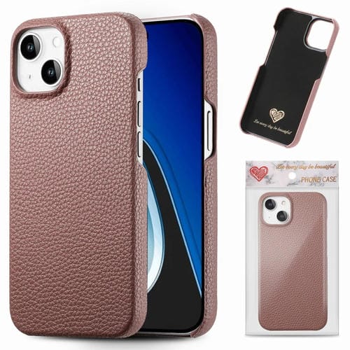 For iPhone 15 Phone Case with Litchi Oil Edge Leather Back Cover (Jujube Apricot)