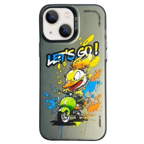 Funda para teléfono iPhone 15 Serie Plateada Doble Capa Pintura al Óleo Animal (Duck Rush)