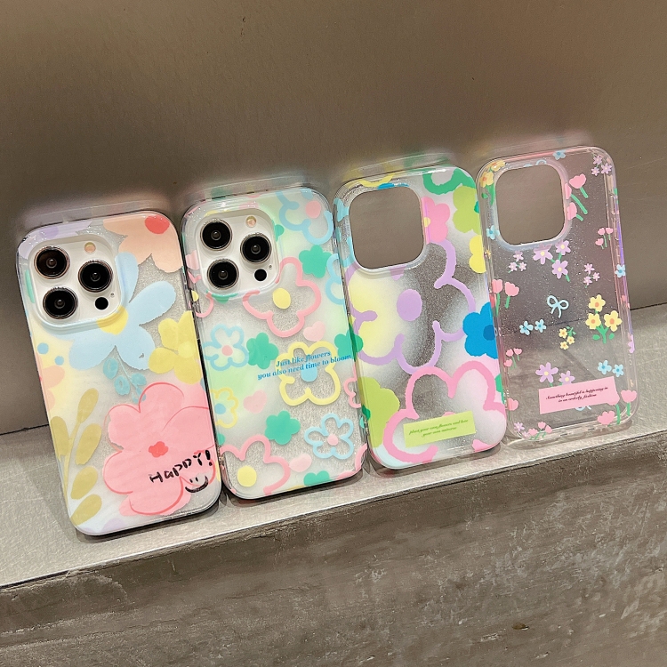 Funda para Teléfono TPU iPhone 15 Cobertura Total Imd Doble Cara (Flores Azules, Amarillas y Rosadas)