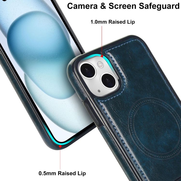Funda para Teléfono Magsafe iPhone 15 con Soporte Invisible de Cuero Retro (Azul)