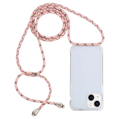 Funda Protectora Acrílico para iPhone 15 a Prueba de Golpes con Cordón (Café Rosa Albaricoque)