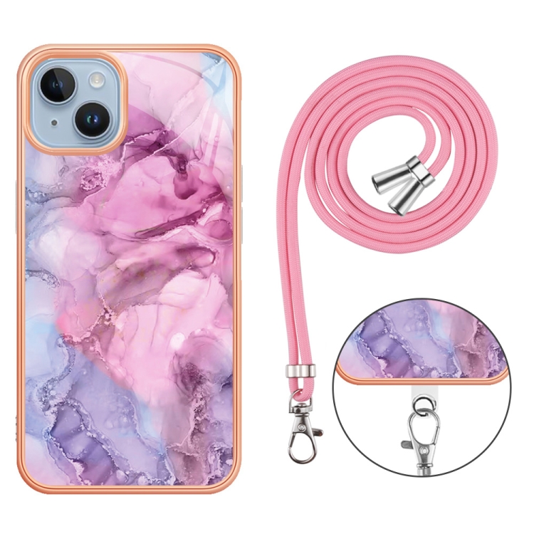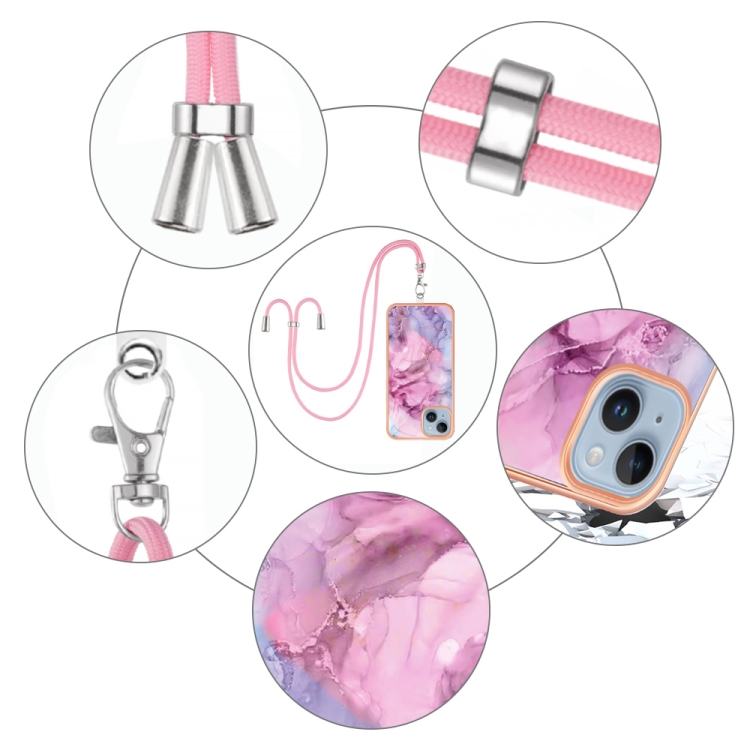 Funda para Teléfono iPhone 15 Galvanoplastia Imd TPU con Cordón (Rosa)