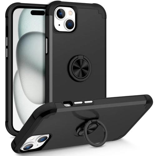 Funda para Teléfono iPhone 15 L2 Magnética con Soporte de Anillo Giratorio (Negro)