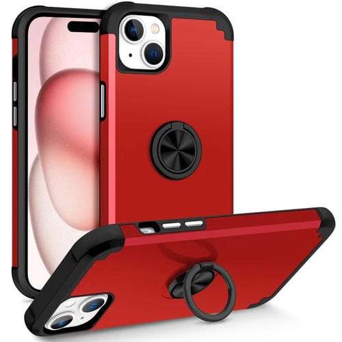 Funda Magnética para Teléfono iPhone 15 L2 con Soporte de Anillo Giratorio (Rojo)