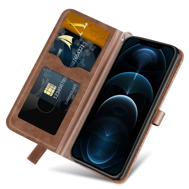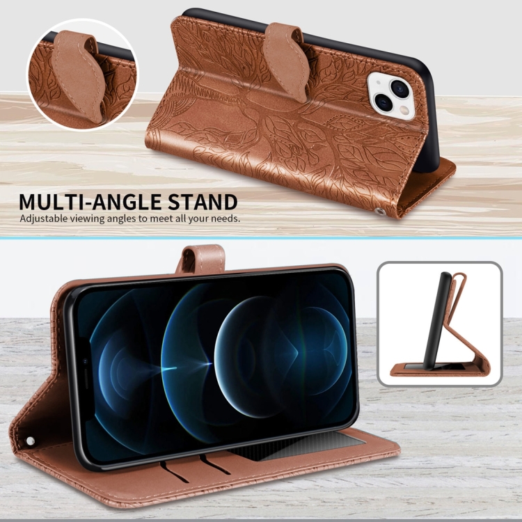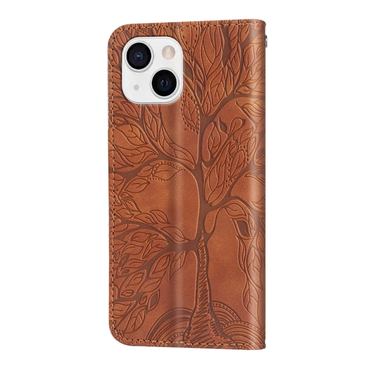 Funda de Cuero para Teléfono iPhone 15 Life Tree Embossing Pattern (Marrón)