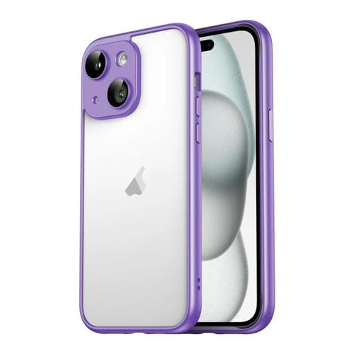For iPhone 15 Macaron PC Phone Pure Edge Frame with Glass Lens Film (Purple)