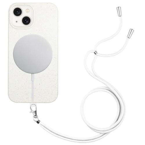 For iPhone 15 MagSafe Magnetic Wheat Straw Material + TPU Phone Case with Lanyard (White)