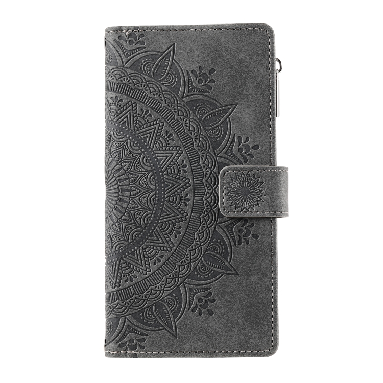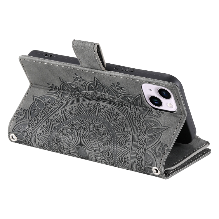 Funda para iPhone 15 Multi-Card Totem de Cuero con Cremallera (Gris)