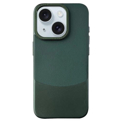 For iPhone 15 Napa Texture PC + Leather Phone Case (Dark Green)