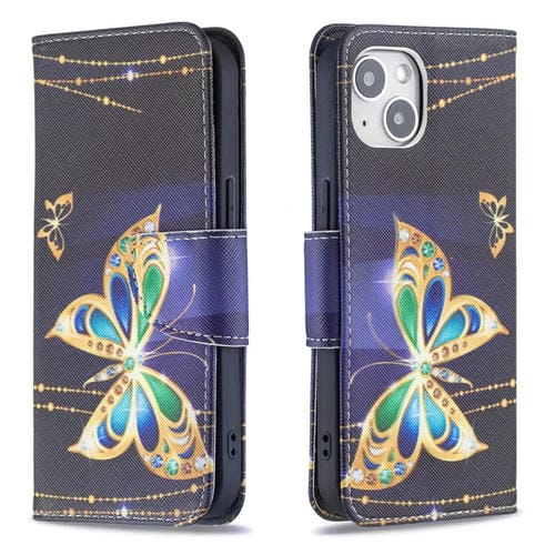 Funda flip de cuero para iPhone 15 con patrón de dibujo coloreado (Mariposa Grande)