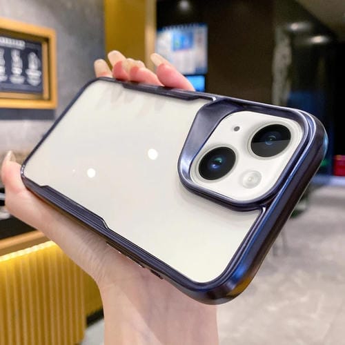 Caja híbrida para iPhone 15 Plus con marco de TPU galvanizado (Azul)