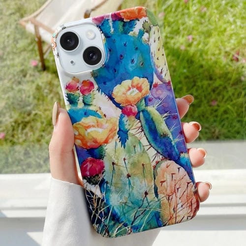 Estuche para Teléfono iPhone 15 Plus con Barra de Agua Barnizada para PC (Espinas de Cactus)