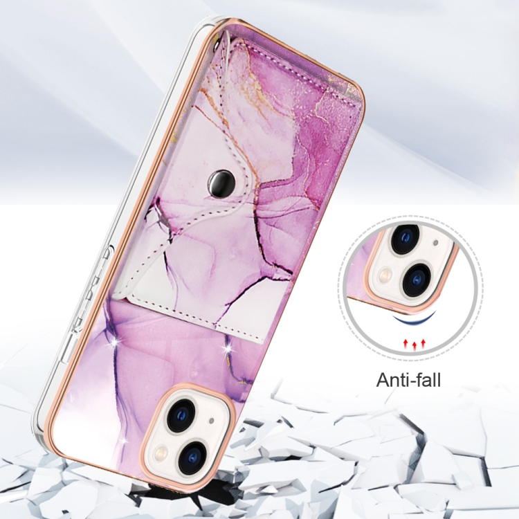 Estuche para Teléfono iPhone 15 Plus con Ranura para Tarjeta Imd Patrón de Mármol (Oro Rosa, Morado)