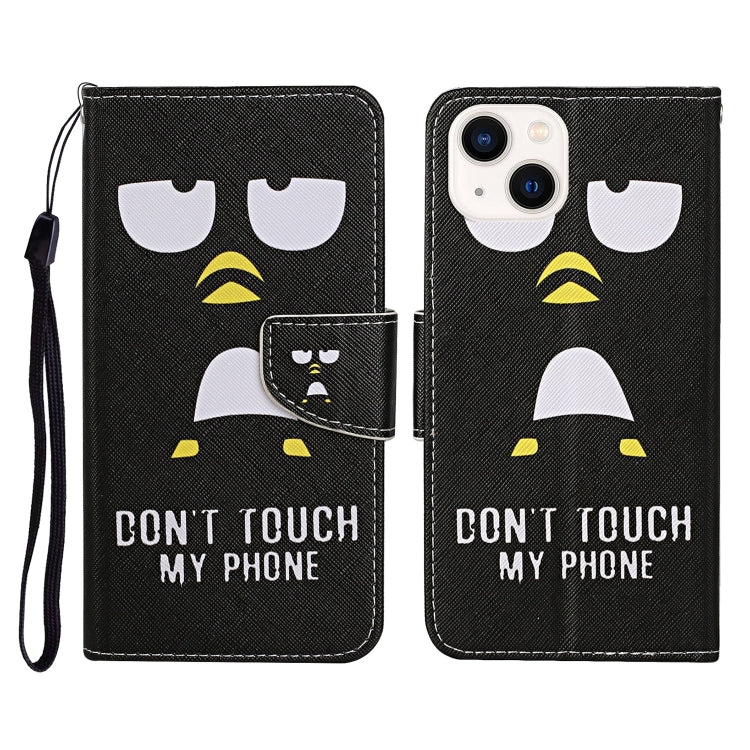 Estuche para teléfono iPhone 15 Plus tapa de cuero dibujo 3D (Pingüinos)