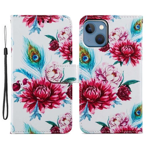 Estuche para Teléfono iPhone 15 Plus Cuero Dibujo Coloreado Flor de Pavo Real