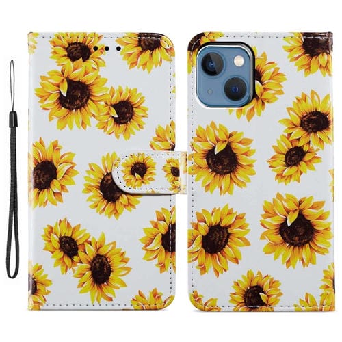 Estuche para Teléfono iPhone 15 Plus Cuero Dibujo Coloreado (Girasol)