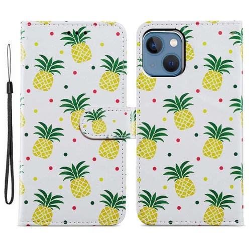 Estuche para Teléfono iPhone 15 Plus Cuero con Dibujo Coloreado (Piña)