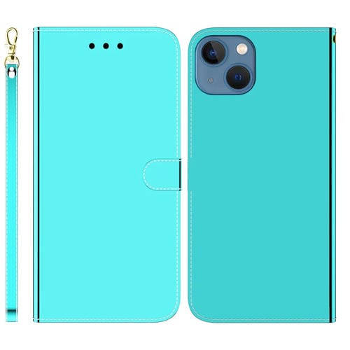Estuche para Teléfono iPhone 15 Plus Cuero con Superficie de Espejo Imitado (Verde Menta)