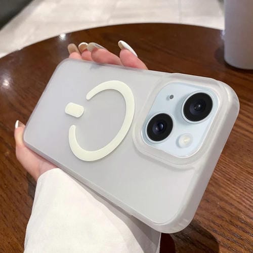 Estuche para Teléfono iPhone 15 Plus Magsafe Transparente Esmerilado Doble Cara (Blanco)