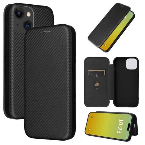 Funda para Teléfono iPhone 15 Plus Cuero Textura Fibra de Carbono (Negro)