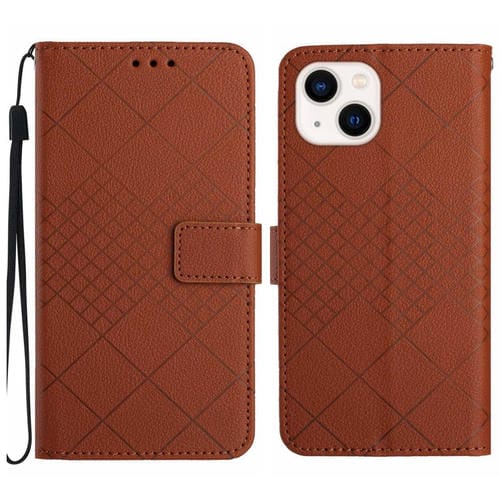 Funda de Cuero para iPhone 15 Plus con Textura de Rejilla Rómbica (Marrón)
