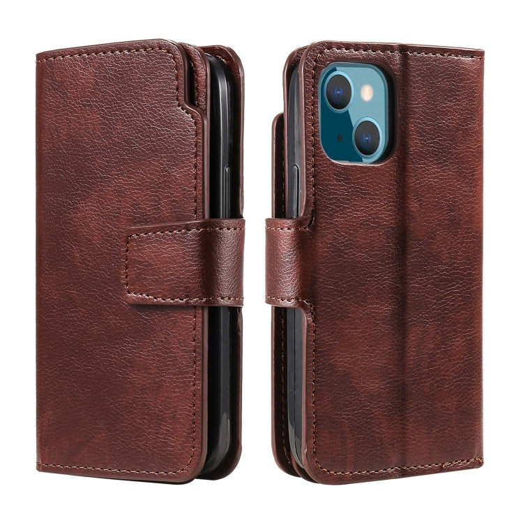 For iPhone 15 Plus 9 Card Trifold Wallet Leather Phone Case (Brown)