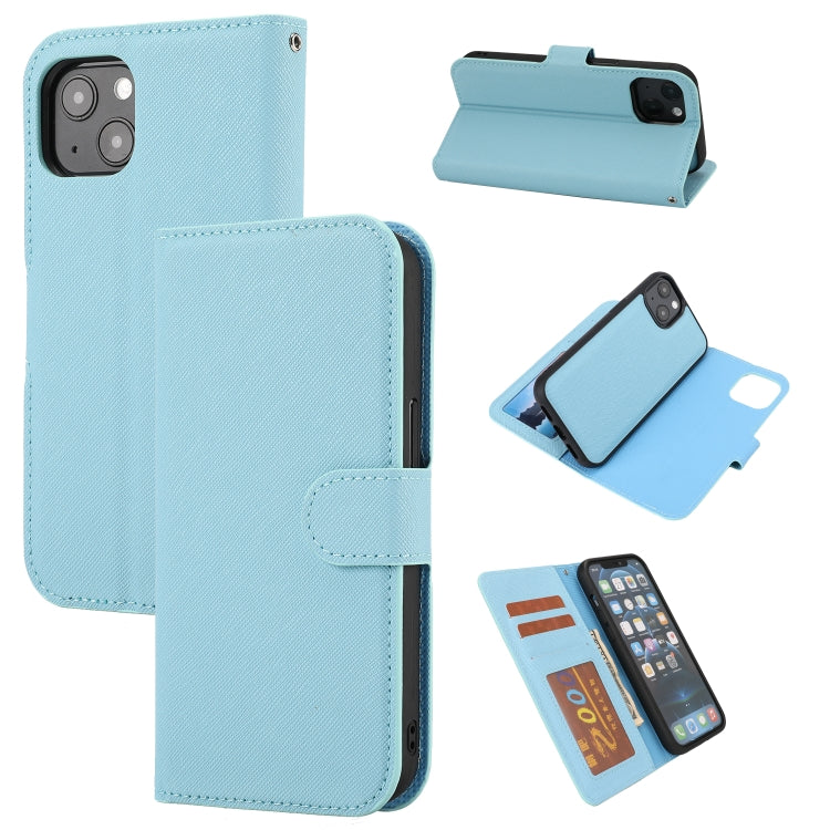 Funda para iPhone 15 Plus Cuero Pu Tapa Horizontal Desmontable Textura Cruzada (Azul)