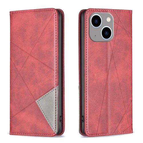 Funda de Teléfono iPhone 15 Plus Cuero Magnético Textura de Rombos (Rojo)