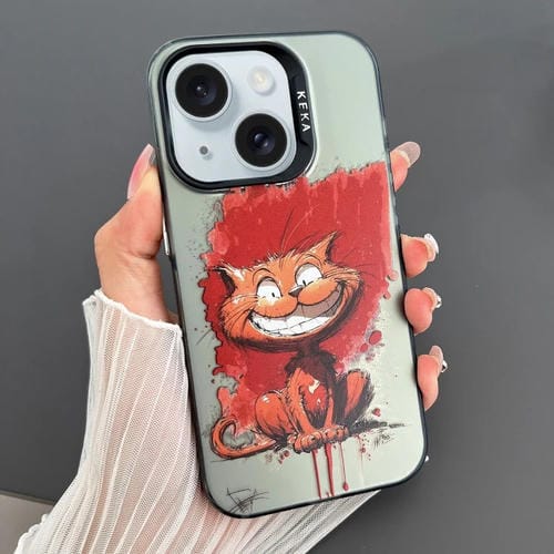 For iPhone 15 Plus Phone Case IMD Animal Graffiti TPU+PC Double-sided (Smiling Cat)
