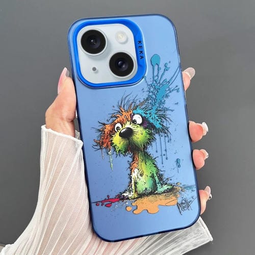 For iPhone 15 Plus Phone Case IMD Animal Graffiti TPU+PC Double-sided (Fall Dog)