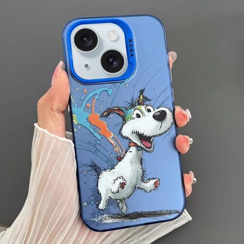 For iPhone 15 Plus Phone Case IMD Animal Graffiti TPU+PC Double-sided (Running Dog)