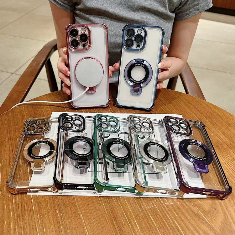 Funda para Teléfono iPhone 15 Plus Magsafe con Soporte Galvanizado Ultrafino (Rosa)