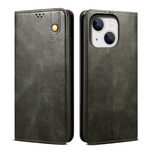 Funda de Cuero para iPhone 15 Plus Oil Wax Crazy Horse Texture (Verde)