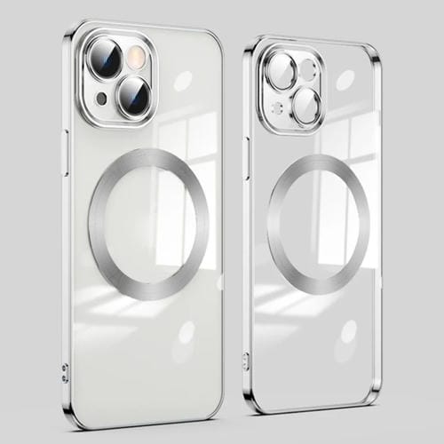 Protector de Lente para iPhone 15 Plus Magsafe Caja de Teléfono Galvanizada (Plata)
