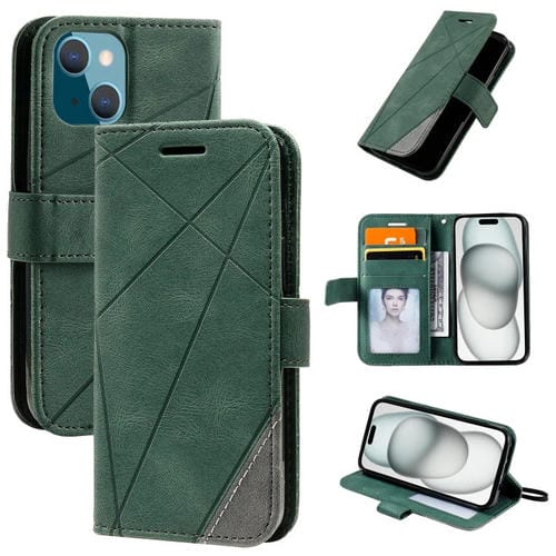 Funda para iPhone 15 Plus Skin Feel Empalme de Cuero para Teléfono (Verde)