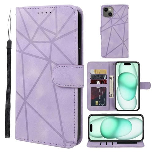 Funda para iPhone 15 Plus Skin Feel Cuero con Líneas Geométricas (Púrpura)