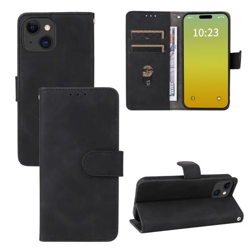 Funda para iPhone 15 Plus Skin Feel Magnetic Flip Leather Phone Case (Negro)