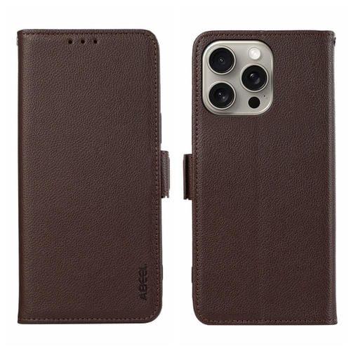 Funda para Teléfono Abeel iPhone 15 Pro Cuero Patrón Litchi Rfid Magnético (Marrón)