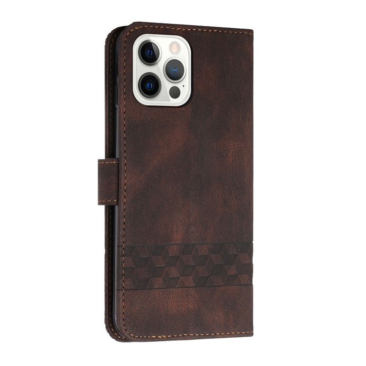 Funda para Teléfono iPhone 15 Pro Cubic Skin Feel Cuero con Tapa (Marrón)