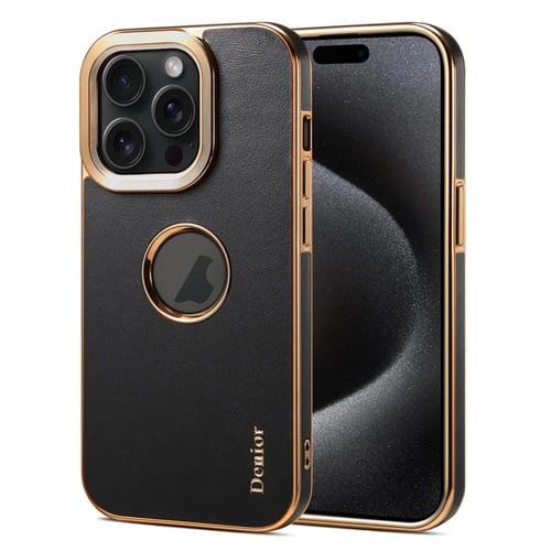 Estuche para Teléfono Denior iPhone 15 Pro Galvanoplastia Textura de Becerro (Negro)