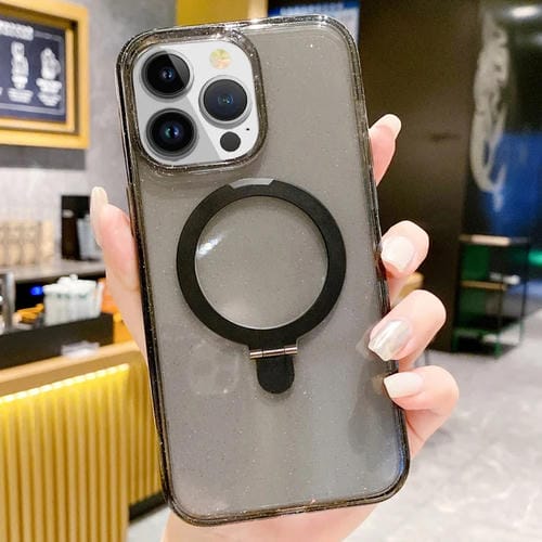 Estuche Magnético para Teléfono iPhone 15 Pro Glitter Magsafe con Soporte (Negro)