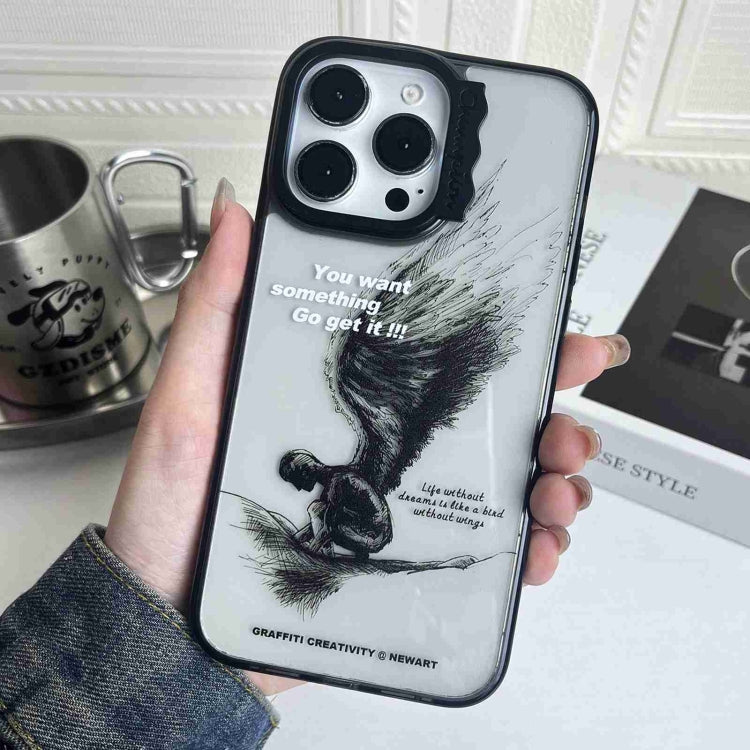 Estuche para teléfono iPhone 15 Pro patrón creativo círculo ondas coloridas (Alas de Boceto)