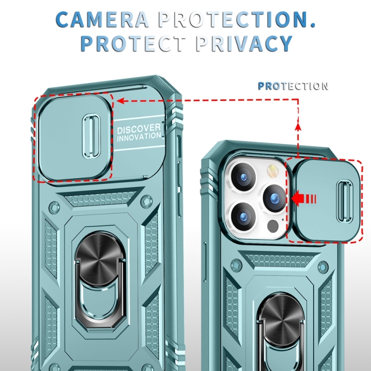 Estuche para Teléfono iPhone 15 Pro con Soporte Deslizante Camshield (Verde)
