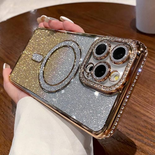 Estuche para Teléfono iPhone 15 Pro Magsafe Chapado en Brillo con Degradado de Diamante (Dorado)
