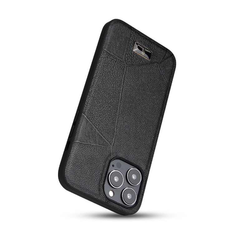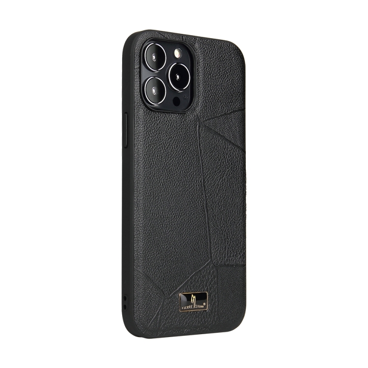 Funda para iPhone 15 Pro Fierre Shann Leather Texture Tapa Trasera (Ox Tendon Black)