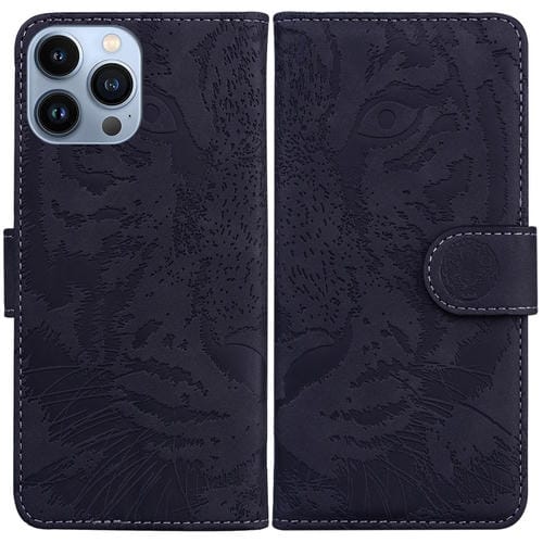 Funda de Teléfono iPhone 15 Pro Cuero Estampado Tigre En Relieve (Negro)