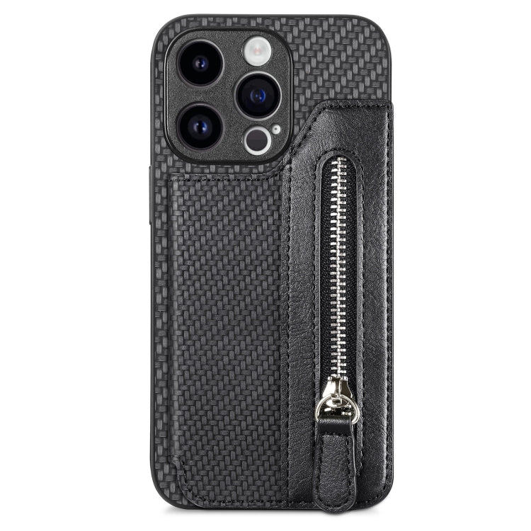 Funda para Teléfono iPhone 15 Pro con Billetera, Cremallera y Tapa Horizontal de Fibra de Carbono (Negro)