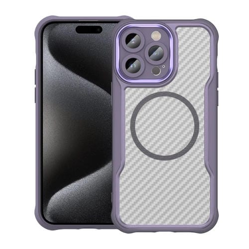 For iPhone 15 Pro MagSafe Translucent Phone Case with Carbon Fiber Texture (Purple)