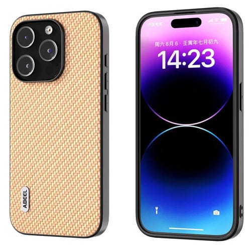 Funda Protectora Abeel para iPhone 15 Pro con Textura de Fibra de Carbono (Amarillo)